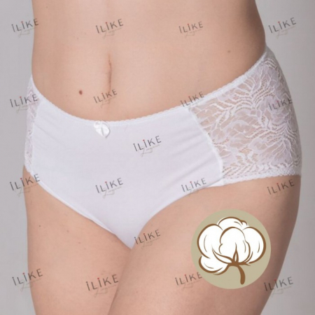 Трусы (хлопок) с высокой посадкой из хлопковой ткани , кружевные сзади - с плоским краем, незаметным под одеждой. Сзади полностью закрывают ягодицы.