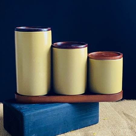 235-115 Набор из 3 банок 700/550/350мл с крышкамина подставке TROPICAL в под.уп.(х8)Фарфор (арт. 235-115)