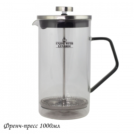 Френч-пресс со стеклянной колбой. Прочная колба из боросиликатного стекла устойчива к перепадам температуры,