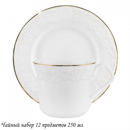 Посуда из серии БЕЛАЯ РОЗА выполнена из высококачественного Изделия простого лаконичного дизайна на бортике с изящным и объемным узором в виде распустившейся розы, по краю золотая отводка. В серии посуды из белого фарфора представлен широкий ассортимент товаров для сервировки стола, которые, несомненно, впишутся в любой интерьер.