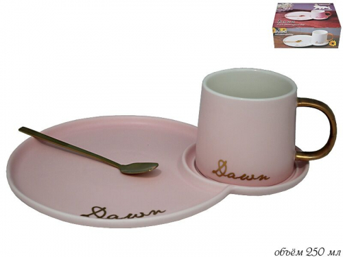 106-028 Чашка 250 мл с блюдцем и ложкой в под.уп.(х20)Фарфор (арт. 106-028)