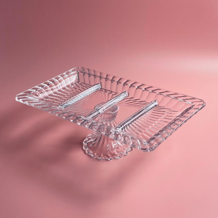 588-695 Прямоугольная менажница 37,2х22,5х12,5см на ножке в под.уп.(х6)Стекло (арт. 588-695)