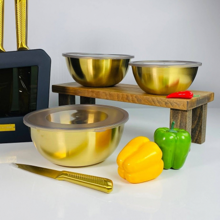910-017 Набор из 3 мисок/салатников 16/19/21см с крышками в под.уп. (х24) Нержавеющая сталь (арт. 910-017)