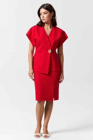 Юбка из плотного трикотажа с деликатным разрезом. Модель полуприлегающего силуэта на обтачке. По переду разрез. Застежка сбоку на потайную молнию.