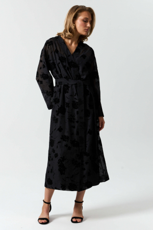 Двойное платье - комбинация и накидка из органзы с фактурным принтом. Модель свободного силуэта со спущенным плечом на поясе. По переду запах. Рукав длинный. Пояс в комплекте.