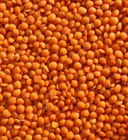 Красная чечевица. Разваривается быстро, оболочкой не обладает.