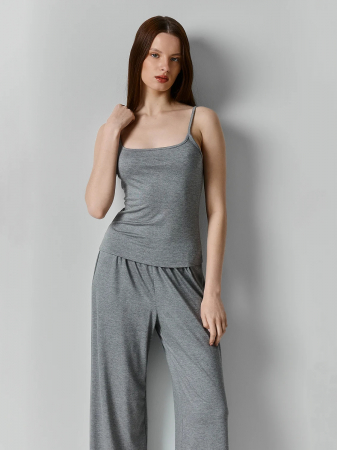 Женский домашний комплект — воплощение комфорта и элегантной простоты! Топ прилегающего силуэта с тонкими бретелями аккуратно подчеркивает фигуру, создавая нежный и женственный образ. Благодаря эластичной вискозе он остается мягким и приятным к телу, обеспечивая комфорт в течение всего дня. Нижний край обработан швом вподгибку для аккуратного вида. Брюки прямого силуэта дополняют образ легкостью и свободой движений. Эластичный пояс мягко фиксируется, не создавая ощущения стеснения, а обработка низа швом в подгибку придает изделию завершенный вид. Комплект идеально подходит для отдыха, домашних дел и расслабленных вечеров, сочетая удобство, мягкость и непринужденный стиль. Прекрасный выбор для тех, кто ценит комфорт и легкость!