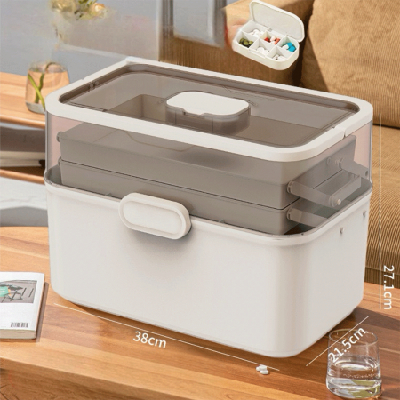 Многоярусный прозрачный огромный контейнер поможет навести порядок в доме, его удобно брать с собой в машину для оказания первой помощи во время путешествий. Это отличный варинат, как переносная аптека в дорогу, ведь скорая и неотложная помощь может быть оказана быстро и качественно в том случае, если все необходимые предметы находятся под рукой. Портативный медицинский контейнер с наполнением может быть использован, как дорожная, детская, туристическая, походная коробка.