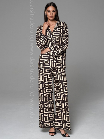 Комплект Mia-Amore состоит из жакета с длинным рукавом и широких брюк. Изделия комплекта выполнены из принтованного трикотажного полотна.