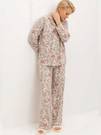 Комплект для комфортного сна и отдыха из набивного трикотажа из 100% натурального хлопка. Рубашка с длинными рукавами на пуговицах. Брюки с мягким поясом на резинке. Гладкий материал приятен к телу, не теряет форму и позволяет коже дышать. Гипоаллергенные красители.