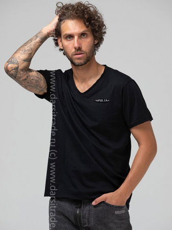 Мужская футболка с V-образным вырезом с оригинальной обработкой кромок. Изюминка модели - кармашек на груди, внутри которого нанесён логотип Opium.