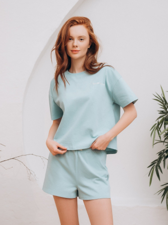 Стильная домашняя одежда от торговой марки Индефини в виде футболка с шортами, самая популярная, можно носить в любое время года. Такой вид одежды подарит комфорт и уют дома.
