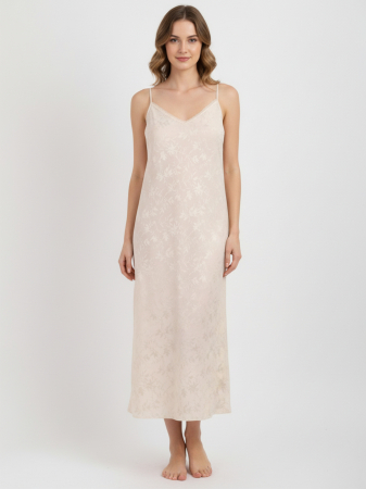 Роскошная сорочка длины миди из мягкой вискозы с жаккардовым рисунком. Плотная, но невесомая ткань завораживающе «играет» на свету, создавая плавные красивые переливы.