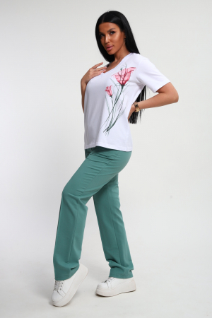 Костюм женский это стильный и идеальный предмет гардероба ,идеально подходящий для дома и отдыха на любой период :весенний ,осенний, летний и зимний . Комплект состоит из футболки с красочным принтом и брюки в контрастном цвете. В составе ткани 100% хлопок . Хлопковый материал очень комфортный и лёгкий в носке . Брюки с удобной посадкой придадут вашему образу стильный и модный вид . Базовый современный костюмчик популярный повседневный выбор на каждый день : на работу , для прогулок , праздников и на дачу . Универсальный стиль позволит вам создавать разнообразные образы , подходящие для любого события.