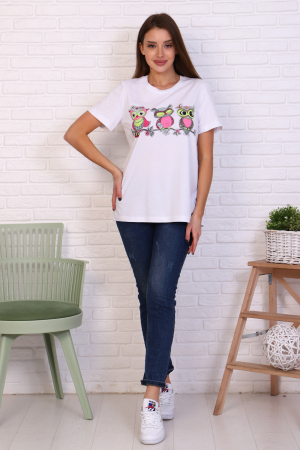 Молодежная футболка из кулирки 100% хлопок свободного кроя oversize, с втачным коротким рукавом, горловина округлой формы. На полочке изделия принт. Низ рукава и низ изделия подгибка.