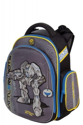 - два больших отделения на молниях. В основном, самом большом отделении расположены жесткие перемычки- вставки, для комфортного размещения тетрадей или учебников. В переднем отделении предусмотрен органайзер с карманом для мобильного телефона, сетчатым карманом для мелочей, отделениями для ручек и карандашей, подвеской для ключей.