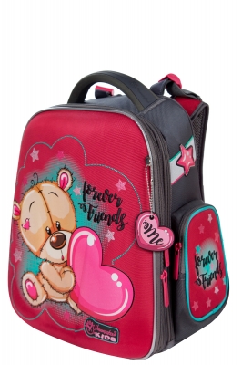 - два больших отделения на молниях. В основном, самом большом отделении расположены жесткие перемычки- вставки, для комфортного размещения тетрадей или учебников. В переднем отделении предусмотрен органайзер с карманом для мобильного телефона, сетчатым карманом для мелочей, отделениями для ручек и карандашей, подвеской для ключей.