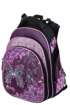 - два больших отделения на молниях. В основном, самом большом отделении расположены жесткие перемычки- вставки, для комфортного размещения тетрадей или учебников. В переднем отделении предусмотрен органайзер с карманом для мобильного телефона, сетчатым карманом для мелочей, отделениями для ручек и карандашей, подвеской для ключей.