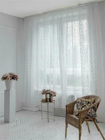 Тюль органза может использоваться в качестве легкой шторы, когда не требуется затемнение помещения. Тюль подходит для любого типа карнизов, края обработаны в подгибку, внизу- утяжелитель. Тюль из органзы устойчив к деформации, не мнется, имеет высокую прочность и износоустойчивость, пропускает свет, после стирки материал не дает усадки и не деформируется.