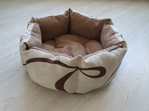 Круглая лежанка с бортиками, матрасик съемный. Легко стирать и сушить. Ткань прочная и долговечная.