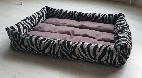 Прямоугольная лежанка с бортиками, матрасик съемный. Легко стирать и сушить. Ткань: бортики снаружи мебельная очень плоная рогожка, внутренняя сторона- канвас. Обе ткани прочные и долговечные, абсолютно не подвержены затяжкам!!! Размер 70*100