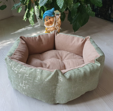 Круглая лежанка с бортиками, матрасик съемный. Легко стирать и сушить. Ткань прочная и долговечная.