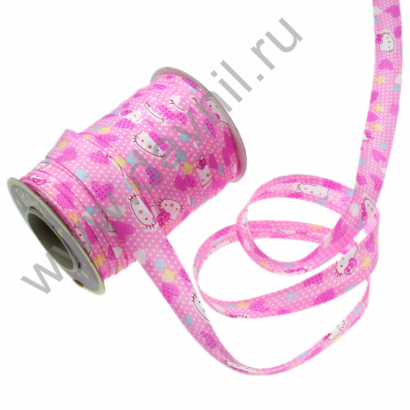 Бейка косая хлопчатобумажная "Hello Kitty" 2 см*50 ярдов розовая (арт. К47-2)