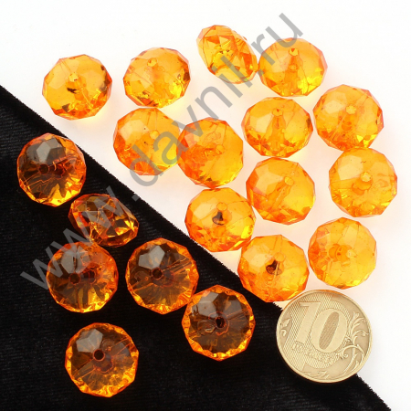 Бусины акрил гранёные рондели d=18 мм 50 гр оранжевые (арт. К101-138Ф)