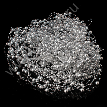Бусины на леске под жемчуг 8 мм 1,3 м 40 шт серебряные 23 (арт. К121-10)