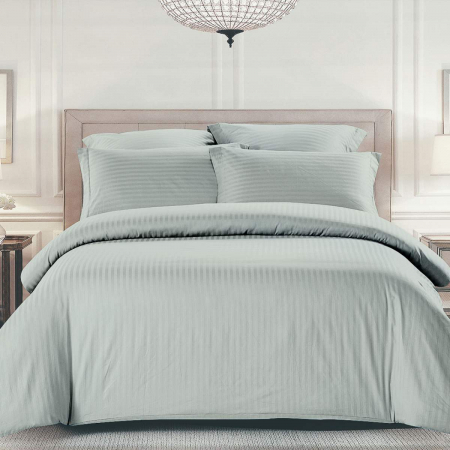 Страйп-сатин – это премиальная ткань, сочетающая в себе мягкость и прочность. Сочетание сатинового и жаккардового плетений создает однотонный рисунок с чередованием глянцевых и матовых полосок.