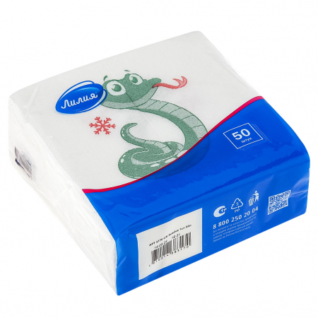 Салфетки бумажные 24х24см "Лилия", 1 слойные, 50 штук в упаковке, "Змейка" (Россия) (арт. 106822)