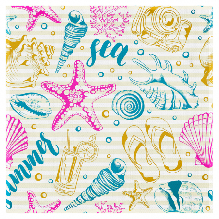 Салфетка хозяйственная 50х50см "Пляж, вид 5", вафельное полотно, хлопок 100%, плотность 165г/м2, без упаковки, "Домашняя мода" (Россия) (арт. 000416)