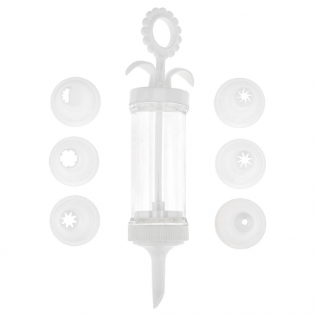 Кондитерский шприц пластмассовый "Пломбир" 18х6,5х5см, насадка пластмассовая для крема - 7 штук, в блистере (Китай) (арт. 049116)