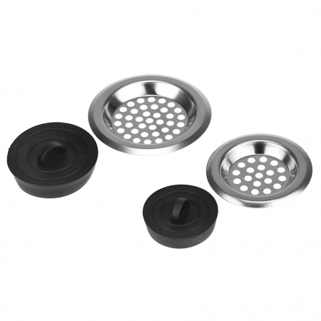 Набор для раковины 4 предмета: пробка-сетка для раковины из нержавеющей стали - 2 штуки: д6см, д7,5см ; пробка резиновая - 2 штуки: д3,5см, д4,5см, на картоне (Китай) (арт. 026645)