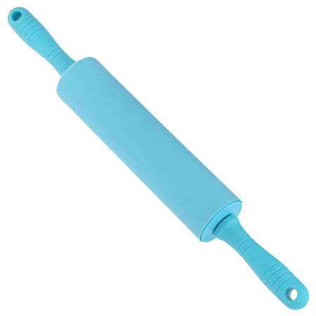 Скалка силиконовая "Монпансье" 41,5см, д5,3см, рабочая длина 20,5см, пластмассовые ручки, цвета в ассортименте: красный, салатовый, голубой, в п/эт пакете (Китай) (арт. 103062)
