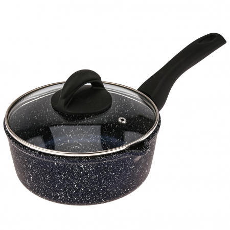 Ковш с тефлоновым покрытием 1,5л, д18см "Сияние Blue", h8см, s0,4см, стеклянная крышка с пароотводом, ручка из термостойкого пластика (Россия) (арт. 106097)