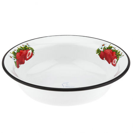 "Сочная клубника" Миска эмалированная 1л, д18см, h5,5см, s0,8мм, двойной слой эмалевого покрытия (Россия) (арт. 106839)