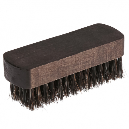 Щетка для обуви 10,5х3,7х4см, малая, деревянное основание - тонированная и лакированная береза, натуральная щетина - конский волос h2,2см, средняя жесткость, 5-и рядная, 70 пучков (Россия) (арт. 106144)