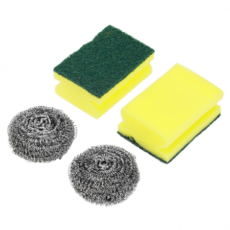 Губка для посуды, 4 штуки: поролон с абразивом 9,5х6,5х4см - 2 штуки; металлическая д6,5см - 2 штуки, в п/эт упаковке (Китай) (арт. 046047)