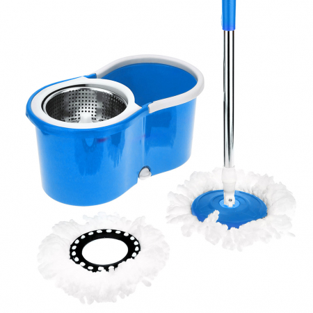 Набор для пола "Торнадо" ведро пластмассовое, рабочий объем 6л, 45х25,5х21см, без педали, с центрифугой из нерж., на колесиках; раздвижная рукоятка нерж. 72-101см д2,4см; насадка микрофибра д15,5см - 2 штуки; цвет синий, в цветной коробке (Китай) (арт. 007386)