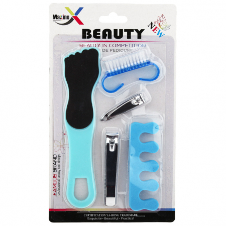 Педикюрный набор 5пр книпсер 5,3см;8см/пилка двухстор 17,3см наждачная/щетка 6,5см/разделитель для пальцев 9,5см розовый/голубой/фиолетовый в/бл (ДМ)