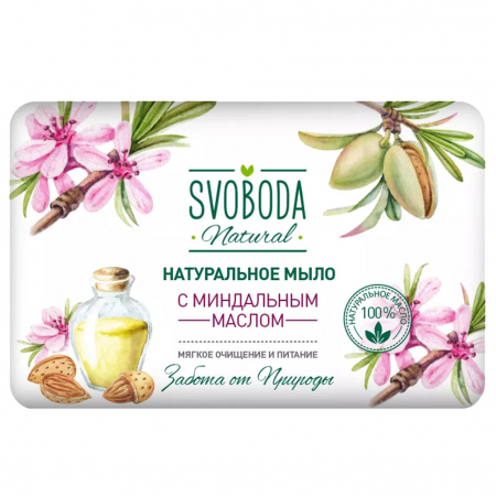 Мыло туалетное твердое "Svoboda" 90г, натуральное, с миндальным маслом (Россия) (арт. 101123)