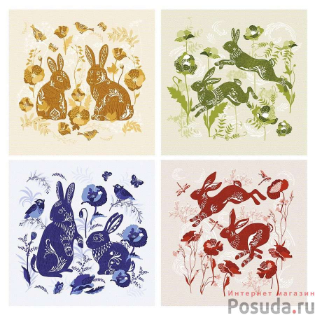 Подставка под горячее "Зайцы на лужайке". Размер 14х14см. 4диз. NEW арт. MD-MT88-439 (арт. MD-MT88-439)