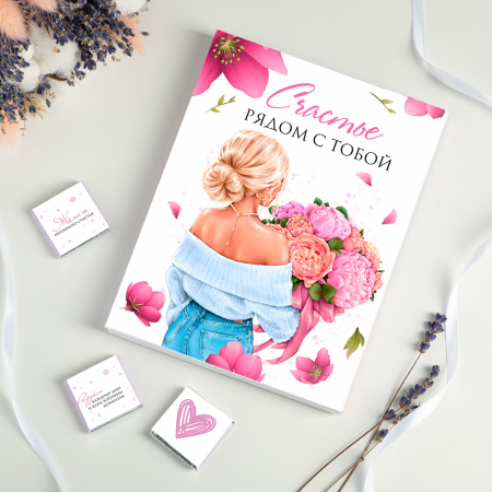 Набор 12 шоколадок "Счастье рядом с тобой" (девушка с цветами) (арт. Н12161)