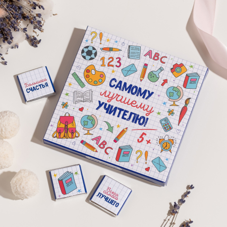 Каждая шоколадка упакована в индивидуальную этикетку с пожеланием.