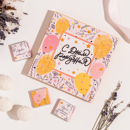 Набор 9 шоколадок "С днем рождения (розовый с оранжевым)" (арт. Н9113)