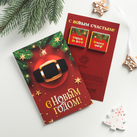 На обратной стороне открытки 2 шоколадки (вес: 5 гр., размер: 31 х 31 мм.)
