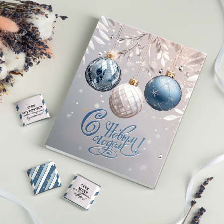 Каждая шоколадка упакована в индивидуальную этикетку с пожеланием.