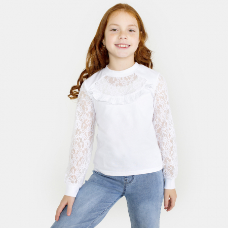 Размерный ряд: 128, 134, 140, 146, 152. Ткань: кулирка с лайкрой плюс гипюр. Состав: 92% хлопок, 8% лайкра.Данная модель отшивается в одной расцветке.