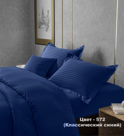 Комплект постельного белья Шпинель классический синий страйп-сатин с простынёй на резинке (арт. 2109810091-2-x спальный)